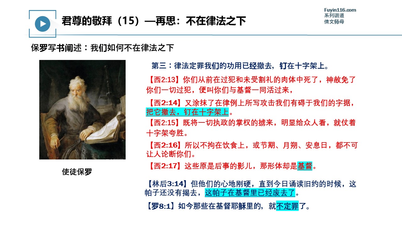 使徒保罗说“你们不在律法之下,乃在恩典之下”。
